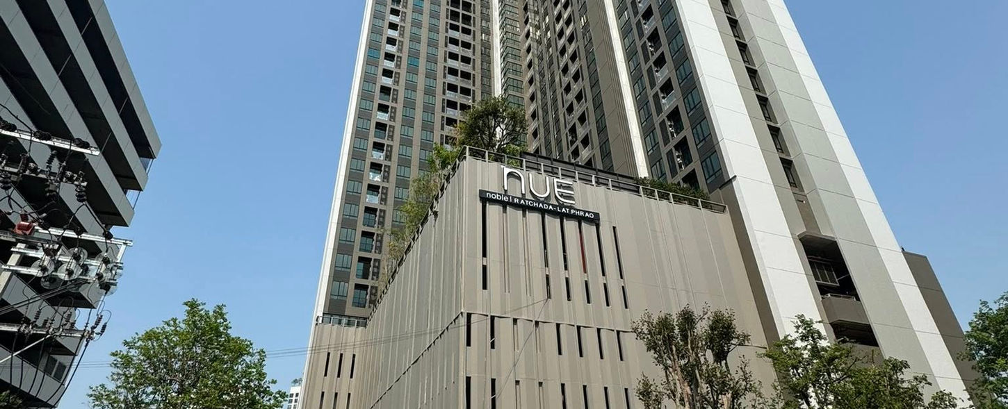 Nue Noble Ratchada–Lat Phrao, completed in 2024 by Noble Development, is a 34-storey high-rise condominium in Chan Kasem, Chatuchak, Bangkok, comprising 565 units. Unit types include studio, 1-bedroom, and 2-bedroom layouts (22.5–42.6 sqm). Amenities feature a 7×25 m swimming pool, fitness centre, steam room, library, co-working space, co-kitchen, bar/bistro, laundry, garden, BBQ area, concierge, 24-hour security with CCTV, key-card access, and car parking. Located approximately 150 m from the MRT Lat Phrao interchange station, providing convenient access to both the Blue and Yellow lines.